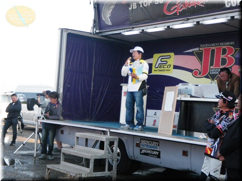 そして帰着とウエインですが…話を聞く限り厳しそーです。ランチングのお手伝いをした山木プロは「3本だよー」、泉プロも「2本」、そして下野プロは「バイトらしきものは1回しか無かった、何処へ行っても風が強すぎて」との事、確かに北浦でこの風はなかなかまともに釣り出来るエリが極端に少なくなってしまうからね。ほぼ1日中強風だったし。結果もそれを物語ってます。このトッププロ60人が真剣に挑んでも5本リミットを揃えた選手が1人もいない。そして初日の結果は、1/3の20名がノーフィッシュ。どんだけにタフになってたんだか~。その中でもトップは4本で3,625gで市村プロ、2位は同じく4本を持ってきて3,498gの馬渕プロ、3位はやはり4本持ってきて3,240g北プロ、4位も4本で3,054gの山岡プロ。この4人が3キロ台。そして5位に関東勢の篠塚プロ。そして朝GPSがダメになってしまった星野プロもノーフィッシュだったようで、やはりGPSは復活しなかったようで、それが痛手ですな。