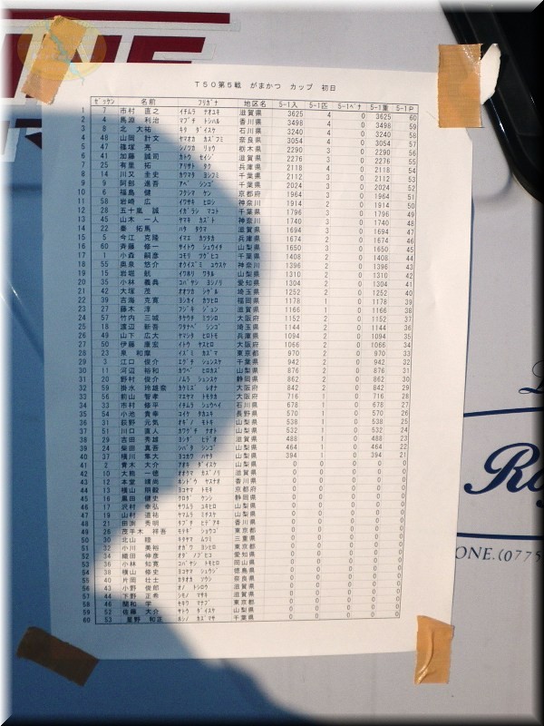 今日もリザルトのプリントの紙はガムテープで4隅をトレーラーのドアにペタペタですな。重みが無いよな~