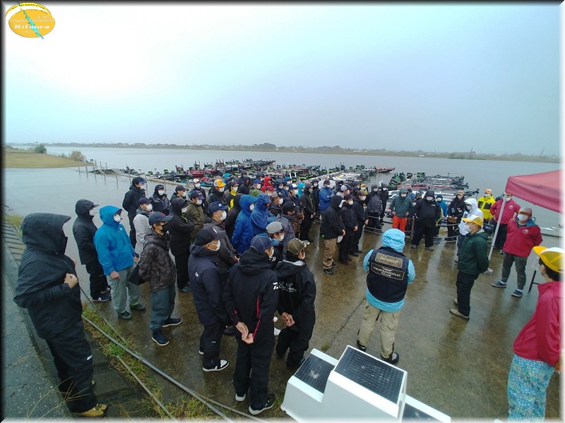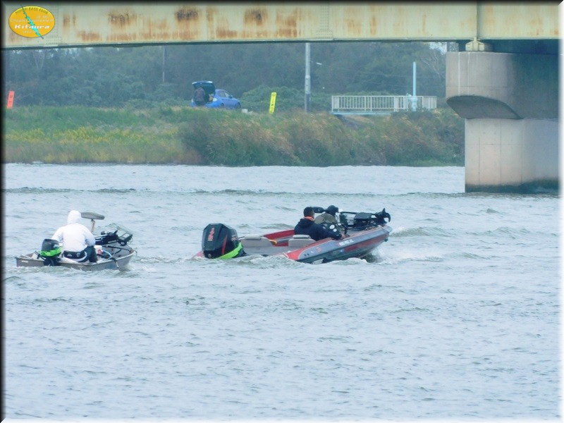 雨が降ってはいますが牛堀会場前は穏やかですが、北浦はザブンザブンに荒れてたらしく、多くの北浦組がこの時点でボート出せない状態だったようで…ありゃりゃ!