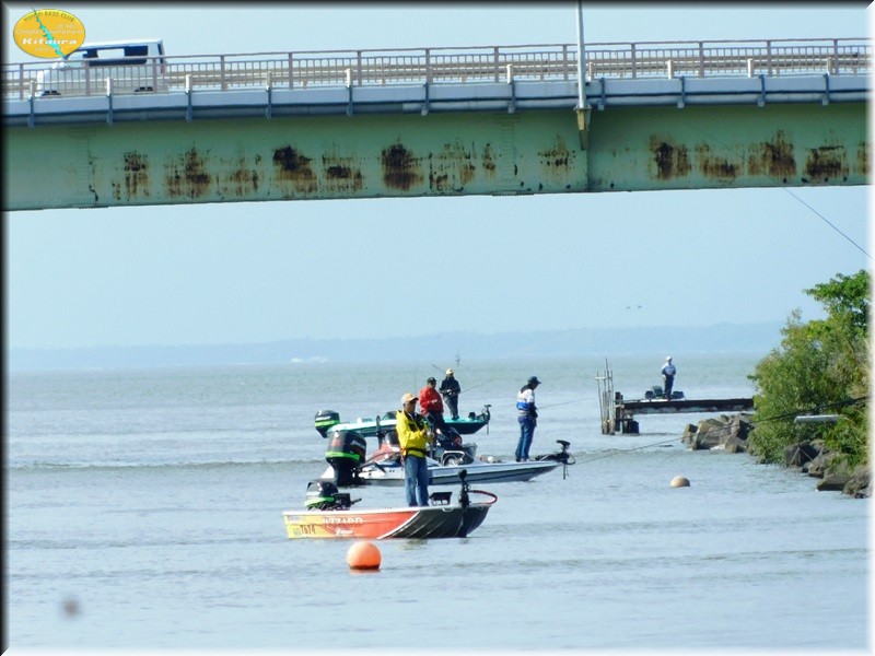 今回は帰着は14時で、公園側に長ーーい網を出してその中に朝引いたスタート番号の札を入れての帰着に。そしてノーフィッシュの選手はその時に一緒に検量カードを入れて即帰路についてもらうシステム!魚を持ってる選手だけが桟橋につけて検量です。さーて、何人がウエイインするんでしょう?雰囲気的にはキビシそーだが