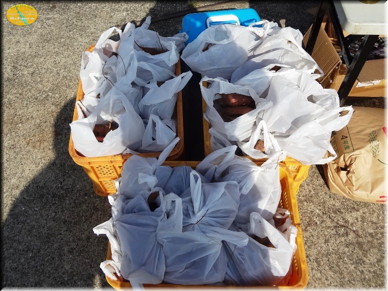 そして参加賞にはスタートの後にスタッフ総出で袋詰めしたサツマイモと、カハラのラバジーとペットボトルホルダー。そして抽選会ではカップ麺、ドリンク、この地域の名産品等々が山盛りで配られた!凄いよねこれでお弁当ついて2日間の試合で参加費のゲー千は…まー権利取らないと参加できないけど(最悪各会長に袖の下で…ウソですよ、権利取れなくって頑張って参加してお手伝いなんかも積極的な人は会長推薦って道も無きにしも非ずです)