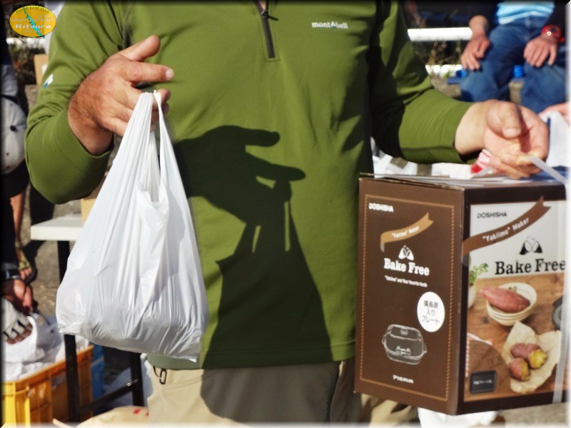 そして優勝の増田選手にはLithi-Bが…すげーな。もー優勝の商品とかがLithi-B等のリチュウムバッテリーが出る時代になったのか~その他の上位の選手にはリールやロッドもそして5名に高級なサツマイモの箱入りを!美味しいんだよな~