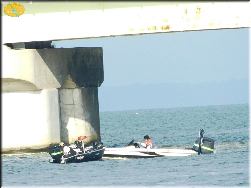 今回スタートで北利根橋付近でアルミ船のエンジンが止まってしまった選手、その場で一生懸命にエンジンを再スタートさせようとしてましたが、もしスタートでエンジンが止まったりのトラブルが発生した場合、後からスタートのボートに突っ込まれることもあり大変危険です。この様な場合はまず、止まったら直ぐ手を挙げて大きく振って後続の船に合図し、ボートのスタートで走ってくるエリアから速やかにエレキなどで離れる事。そして安全なエリアに退避してからエンジンの再始動等をするようにしましょう。とにかくまずは慌てずに後続に合図して自身の安全の為に速やかに安全なエリアに退避する事ですね。今回は後続のボートがきちんと前方の安全を確認してから、止まったボートを大きく避けてスタートしてましたし、何艇かのボートが異常を察知して救援してたようで、何事もなく再スタート出来たようで良かったです!