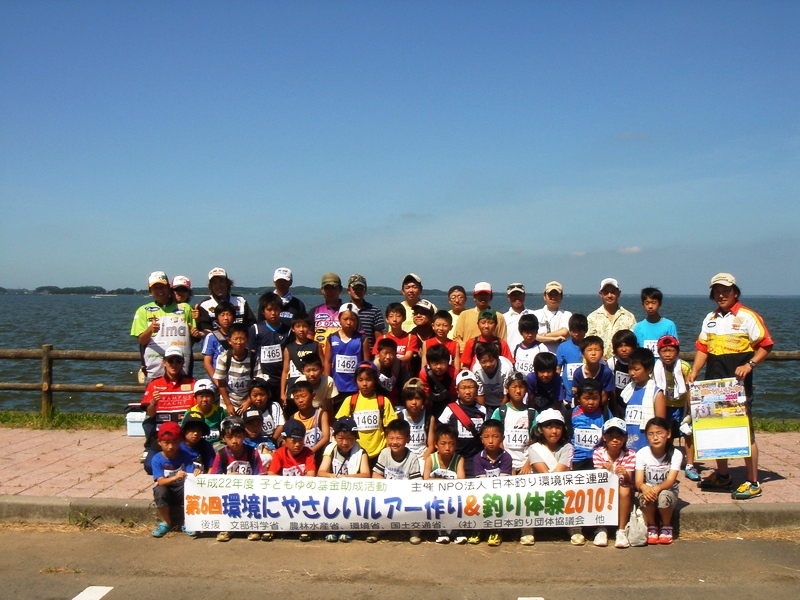 今年も天王崎で釣り環境保全連盟主催で北浦、霞、茨城チャプター合同で開催。この水系ではおなじみの方がインストラクターとして集まりました。まずは1人1人子供に挨拶して集合写真をパッチとな。