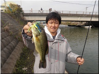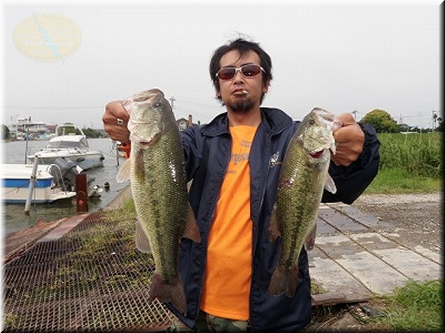 朝一は常陸利根川を下流までいきアシ際、水門、ヘラ台等を私がバズ、大竹ちゃんがスピナベメインで。しかしこの日は2人とも遊ばれまくったわ。アシ際で2度ほどラインが走る魚信があったんですが合わせるとワームだけ無くなってすっぽ抜け。橋脚でも2人で結構バイトがあったんですが合わせきれず。琵琶湖通いで即合わせ出来ない体に。いかんいかん。その後ドック周り等をランガンし鰐川大橋の杭で大竹ちゃんがフォールで1本ゲット。ナイス!流石ですわな~。その後浪逆で私のエレキのロープが切れるわ雨が降り出すわで13時半に終了です。結局『勝大竹チーム』は大竹ちゃんの1本ですわ。トホホ…
