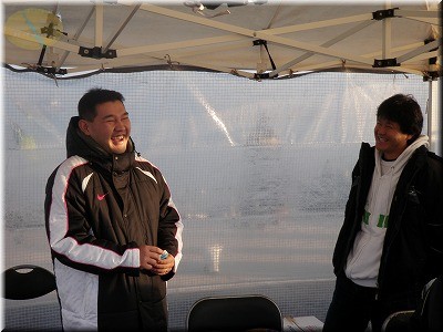 この方がイーストワンの表の顔?(裏の顔は?って聞かれても困りますが…)コージ君。「ハッハッハッハッっ」て笑い声が聞こえてきたらそりゃーコージ君ですわ。いつも私が色々お世話になってます。笑顔でいますが結構運営と進行でドキドキなんだそうですが…、まーメカニック等が専門ですからな、分らんでもないですが頑張ってもらいましょう。所々でチャチャは入れますがね。(なんだかドラゴンボールに出てくるキャラクターに似てるような気がするぞこの写真)