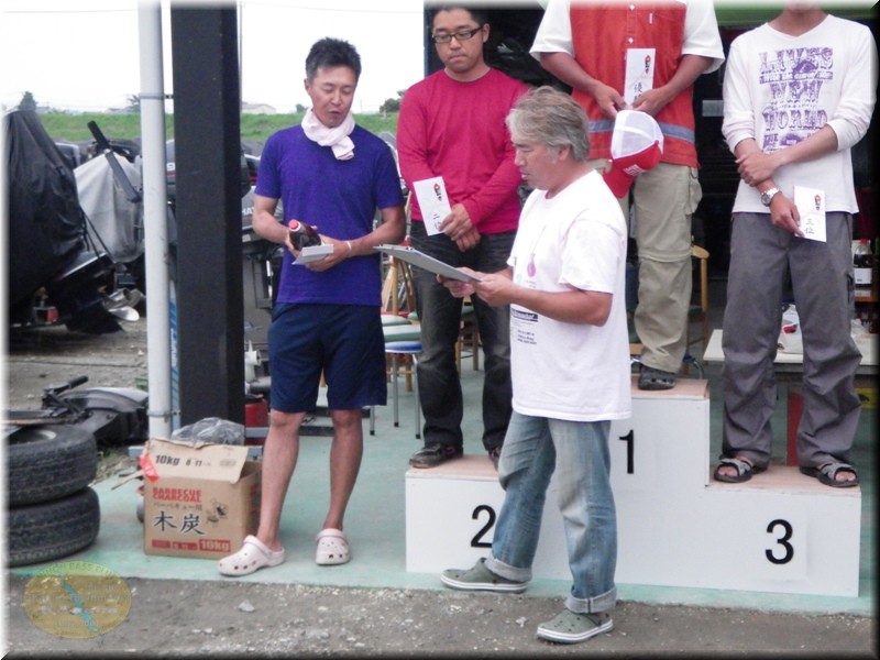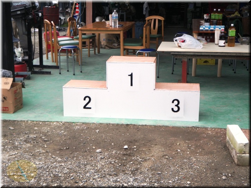そして今回当日に作成されたお立ち台です。前回は色んなものを使って代用してたんですが、皆さんがお立ち台作って欲しいとの要請があったんで作ったようです。まー2位と3位が同じ高さになってますが気にしないようーに。十分立派で見た目的にはいいんでないの~