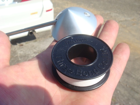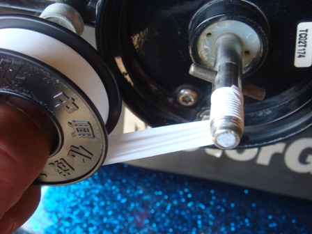 軸にシールテープを巻きつけます、これはスピンナーロック自体が回転しているので緩んで