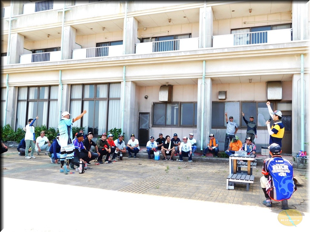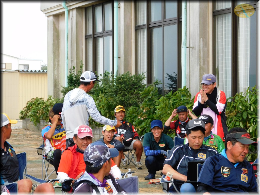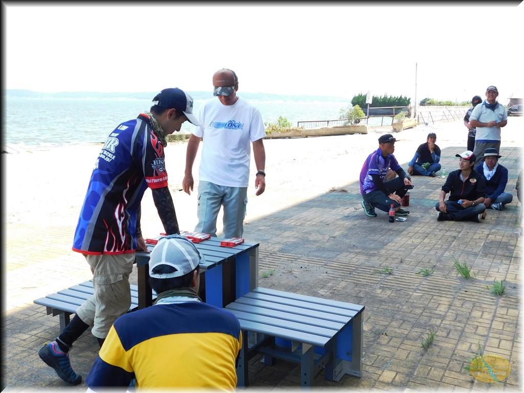 そしてショア部門の帰着&検量です。今回の参加は28名でウエインは11名でした。まー今回も途中から東寄りの風が強くなってましたからな。それに暑いし。石積みエリアはアオコもすごかったらしいでし、ちょいキビシ買ったかなショアは。