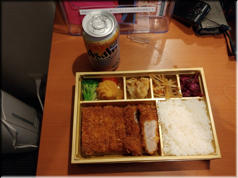 以前は1Fのレストランで食事したけど今回はお弁当を注文した。部屋でゆっくりしたいからね…と思ったら注文は1階へ行ってしなきゃいけんし、できたらまた1階のレストランへ取りに行かなきゃいけんのかーい!電話で注文して部屋に持ってきてくれへんのかい…失敗した!