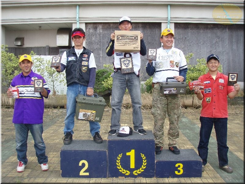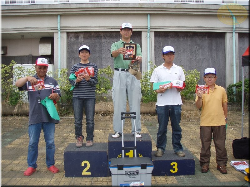 今回も他団体のトーナメントと重なってしまってのと天候の変化もあってタフになっちゃたかも。それでも釣ってくる人は釣る。いいサイズも出ました。そしてショア部門スタッフの大竹君も前週のTOP50のお手伝いの合間でみっちりプラした結果を残して3位お立ち台。プラも無駄になりませんな~。そして今回もベイトブレスの谷野社長の太っ腹ご厚意で参加選手の皆さんに釣れ釣れエコワームを1人2パックもれなくプレゼントもあって、釣った選手は勿論釣れなかった選手にも楽しんでいただけたのでは…抽選会の後はモリゾー選手のボートをバックにパッチと集合写真を撮って今回も無事に終了しました。次回も釣り仲間を誘って参加して下さい。