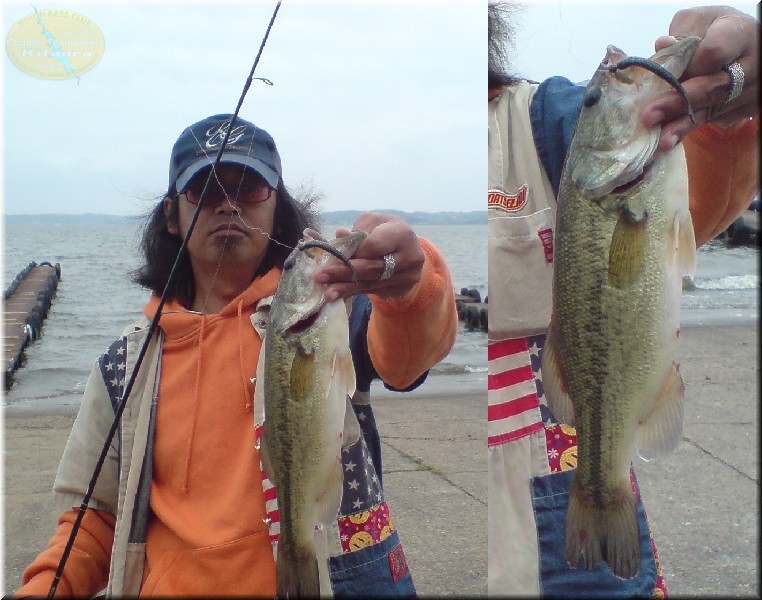 そうそう今回、私大塚もショア部門の開催中に新しくベイトブレスからでたフィッシュテールを使って釣りしてみました。最初は違うワームで桟橋を打ってたんですが全く反応なし。でフィッシュテールの「6月はやっぱジュンバグカラーやー」で、1投目でそこそこのバスが釣れました。これが今年北浦の初バス。少しうれしかったりして。(写真はブスッとしてますが…)今回フィッシュテールをもらった人は使ってみて下さい。釣れますよこれ。終わってから横利根でも2本釣れたしね。