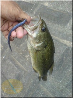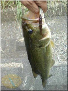 ポイントに着くと淡水ボラの大群(アベレージ20センチ)に混じってバスが見えました。