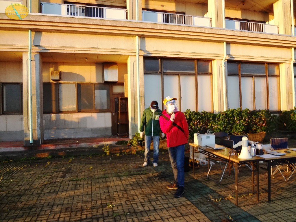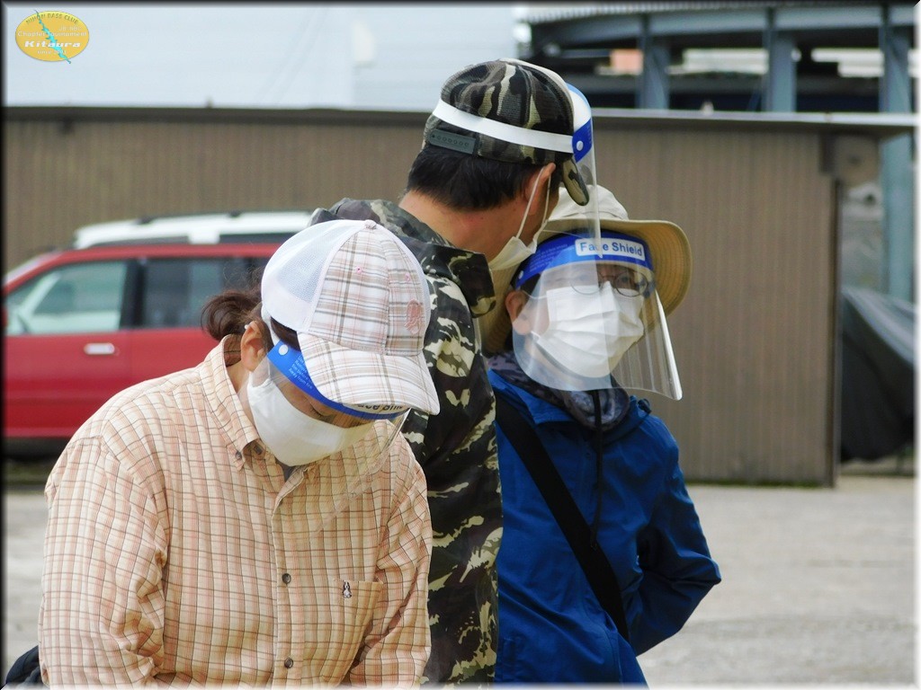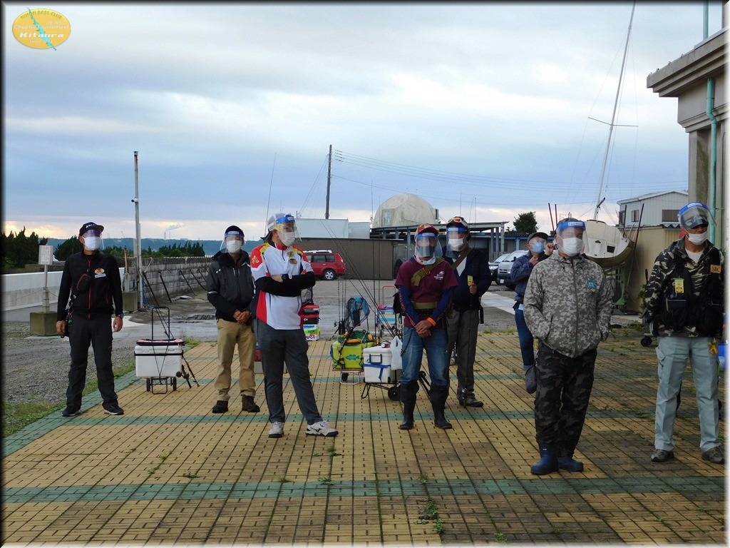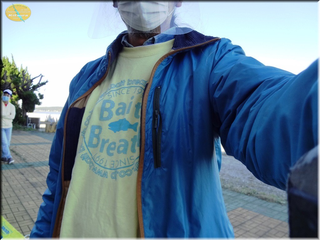 当日は朝は雲が多い空模様で朝の5時半前に潮来マリーナ着。まだ真っ暗やん…それでもショアの選手が集まり始めたので、当然スタッフも検温していばらきアマビエちゃんの登録してフェイスシールドして作業です。まーフェイスシールドは朝は寒いから眼鏡が曇って更にフェイスシールドが曇ってその上老眼近視にはもーちょっとした拷問だわな、参った!おまけに曇り止めのアンチフォッグを忘れて来てるし(泣)