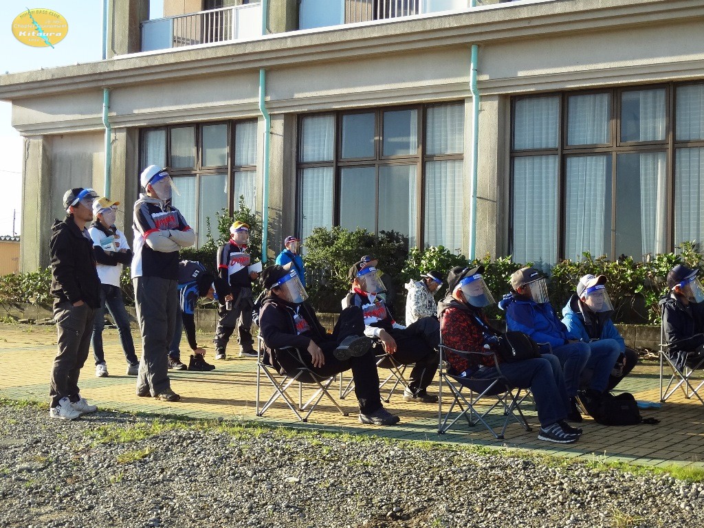 今回も泉副会長の朝のミーティングでエリア、ルール説明が有ってからのショア部門スタート!昨日のサンラインカップはウエイン3名と中々のキビシー釣果でしたが今日はどうなんだか?風が無いから釣りやすいっちゃーそうだが、釣りやすいから釣れるって訳じゃないし…