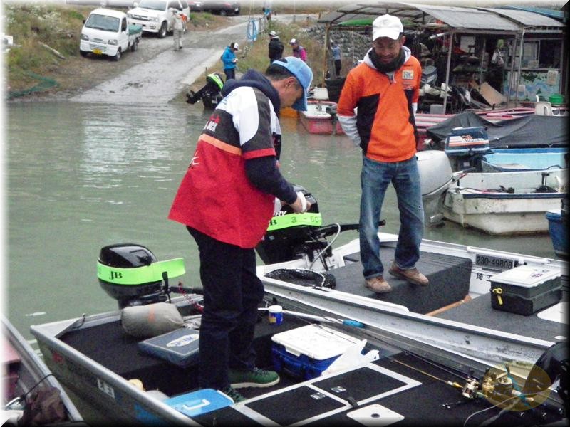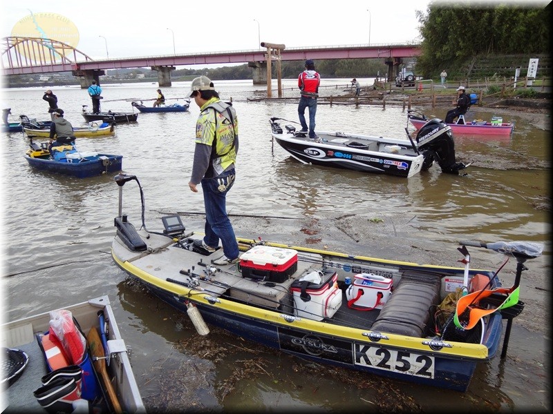 スタートは朝のミーティングの抽選で決まった順でスタート。スタートに向けて関東Aの選手も準備に余念がない中、渕井選手は朝から陽気?です。こりゃー見えてる余裕か?やけくそなのか?まー燃えてはいましたが。そして高滝湖の状況ですが。やはり高滝湖も前日から大雨&大風で湖の状況も一変してしまったようで。水はまさにコーヒー牛乳の様にまっ茶色、多くのゴミが浮いてます。こりゃー厳しくなっちゃてるんでしょうなー。
