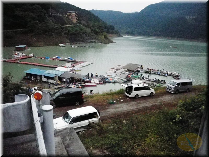 神流湖へ行くのはこれが初めてで全くワカラナイヨー…亀山っぽいのかな?的な感じしかない。取りあえず4時頃に出発です。外環から関越に乗り本庄児玉で降りて行て、カーナビの仰せままに進んでいくと、前にいつの間にかシルバーのバン、「あれ?これって会長の車やん」でやっぱ会長でした。その先のセブンイレブンで渕井会長と待ち合わせだったようです。これから渕井さん先導で神流湖へ。どうにか神流湖へ着ですわ。思ってた程遠くないんだな神流湖。しかし朝は寒いよ気温8度だって…ブルブル…