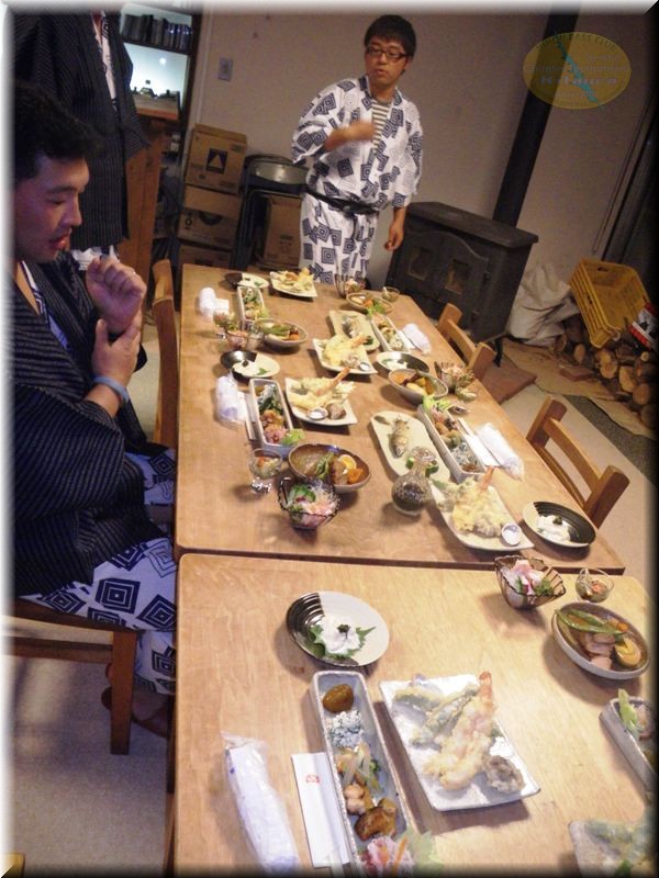 美味しい夕食をたんまり食べてから皆で部屋飲み!皆で古い話なんかで盛り上がりーので数時間、焼酎1本開けちゃったもんな。少し早い時間ですが良い感じに皆なっちゃたんで就寝です。この広い部屋で4隅にそれぞれ布団引いて寝てるし。まー部屋の真ん中にデカイテーブルがあって、飲んじゃってるから皆動かすのが面倒なだけだが。「しかしこのこの部屋テレビが無いね」「そう言えば廊下の隅に沢山テレビ転がってたが」「解った!地デジになっちゃたからじゃん」本当かどうか知りませんがきっとそのせいでテレビがないんでしょ。ビビる君の部屋にも無いって言ってたし。寝るしか無いわな携帯のワンセグも入んないしね!(-_-)zzz
