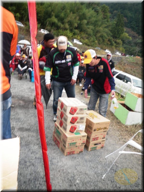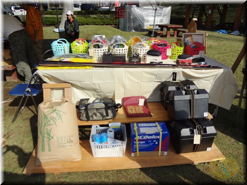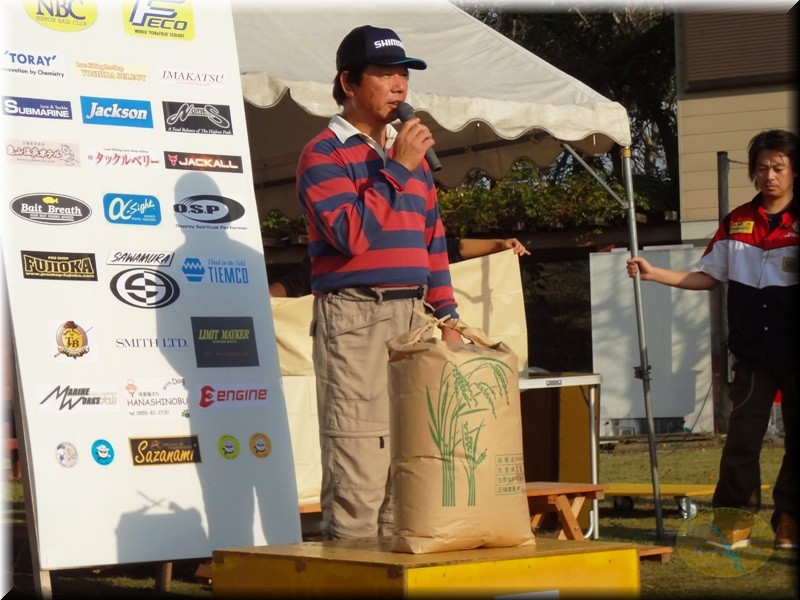 そして更に今回高滝湖のお隣、亀山ダムにある亀山温泉ホテルからも3代目の若旦那が来てまして、「亀山温泉ホテルもバサーやその他の釣り人を応援して行きます」て事でホテルの無料宿泊券のご提供です。ありがたい事です。私もずいぶん昔になりますが、亀山ダムへ行った時に宿泊した事があります。釣り終わりで温泉にゆっくりつかって、これまた美味しい食事して、満足した記憶があります。その宿泊券は関東Aから出場の小川選手がゲットしてましたよ。更に更にこの高滝湖で開催の南千葉チャプターに全面的にご協力して下さってる高滝湖観光企業組合からは玄米30キロ!「30キロって」これもじゃんけん大会の争奪戦で大いに盛り上がってました。