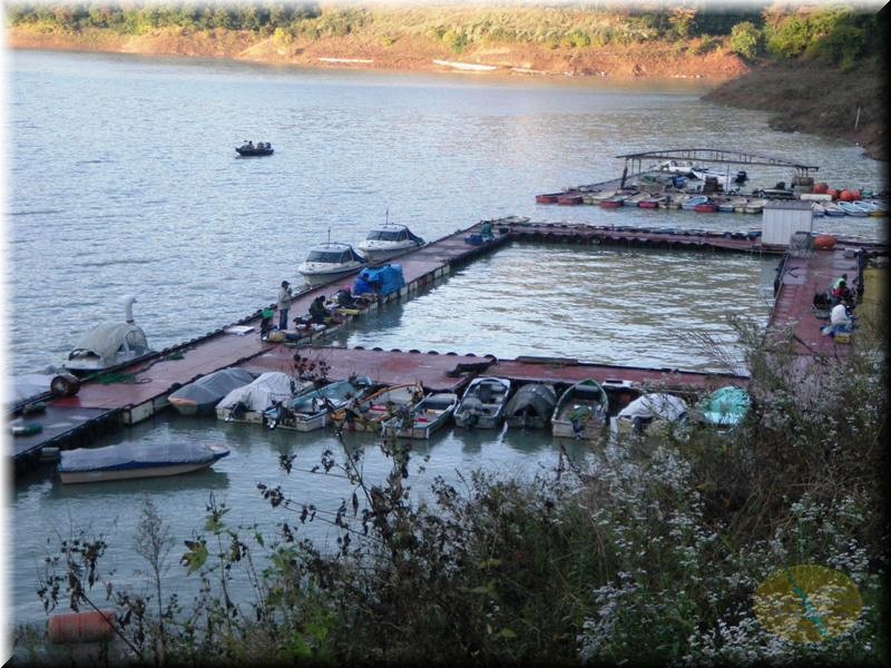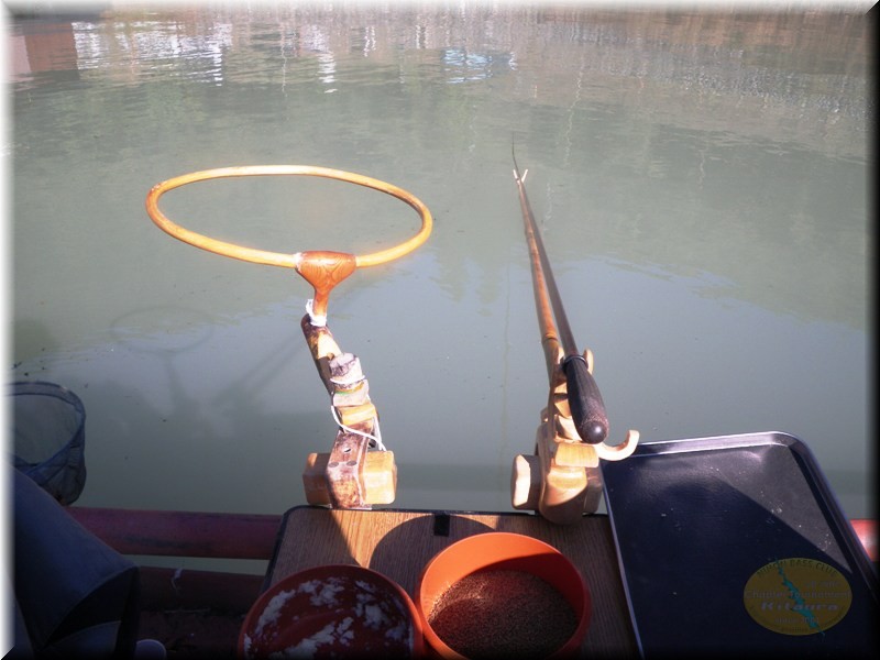 入漁料のツェー千と桟橋使用料のツェー千の合わせてデー千払って桟橋の岸向きで準備開始。水は何だか白っぽく濁ってますが大雨で増水してからずーっとこんなんだって。16尺レインボーを継いで開始。底の量ウドンと両グルで。「しかし釣れないよ!」その内浮きのナジミが変になって来て、浮きが沈み気味に「???なんだかなーこれは」と思ったらなんと増水し始めてるってよ。さすがダム湖や。仕方なく17尺の翼に変えてみたら底が取れない!「え!なんで長くして底が取れないの」なんとこの場所の下には石垣見たいのがあって急に深くなるんだと、「17尺にしたら底取れんのかい」で仕方なく両グルの宙で。しかしヘラは釣れないでジャミばっか…ワカサギだかワタカだか…そのジャミを桟橋からぽいっと投げると何と桟橋の下からデカイバスが出てきてバシャバシャ追っかけて行きますわ。さすがライブベイトはうわさ通りに強力やー