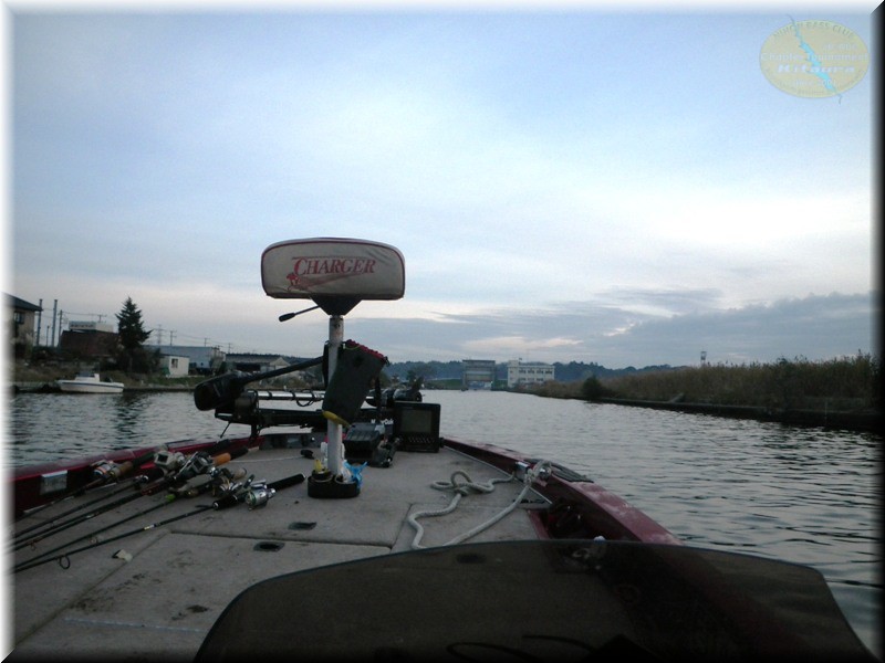 どうにか潮来大橋のそばまで来て空いてる場所があったんですそこへ行ってエレキおろして見たがもー危険ね香りプンプンの強風だし・・・おまけにエレキおろしてロッド持ったら強風でかぶってたキャップがはるかかなたまで飛ばされるわで一気に諦めモード「戻りましょ今日は・・・これにて終了(T_T)