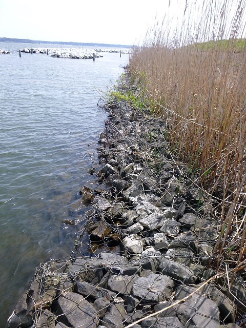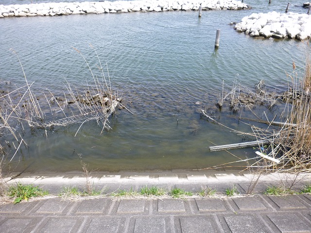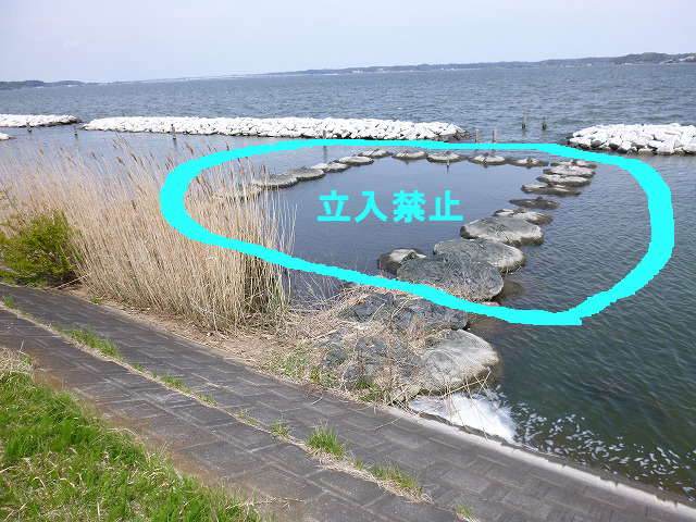 箇所がいくつもあります。足元が非常に不安定で護岸際あたりは仕方ないのですが、沖に向かって伸びている方向へは危険なので事故防止の意味で立入禁止とします。