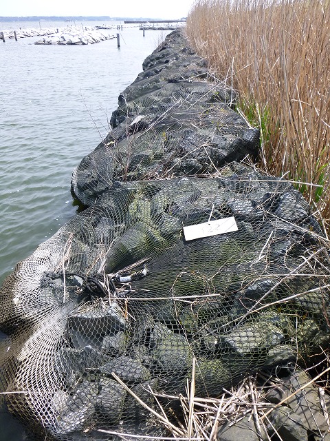 護岸際にジャカゴではなく、フィルターユニットが並べられている箇所もあります。