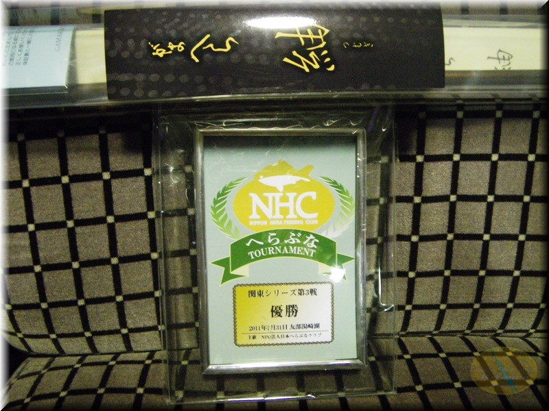 そしてボート部門の帰着。今回は最近にないローウエイト戦になったようですわ。2キロ越えがいない…タフだな今回は。ウエインは12名のみで優勝は3本で1890gの日置選手が念願のホームの北浦での初優勝でした。2位が3本で1750g宮本明選手。3位に北浦チャプター女性アングラー初のお立ちになる大川恵子選手が3本で1620g、4位に2本で1420gで山本選手。そして5位に2本で1350gで鈴木達児選手でした。そしてスンドメ賞は…なんと3連続で松田選手が、3戦、4戦、5戦と3連続でスンドメ賞って…新たなスンドメ王子現るか?そりゃー「もーこの盾欲しくないんですが…」って言いたくなりますな。でもきちんと貰って飾って下さい!ちょっとプリンターの不調でプリントも縞がはいってしまってますが…来年はちゃんとプリント出来るようにしておきます…6戦目までは無理かな~。