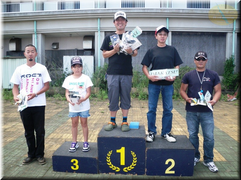 ショア部門も今回もいつもの通り開始したようで…今回も私は1人で本部のお留守番です。ショア部門は何時もの通り宮崎副会長にお任せで。そして最終戦のショア部門は唯一のキロアップを仕留めた女性アングラーの上原充恵選手が優勝です。強いですな~。2位は880gで鈴木信哉選手。3位に820gで新門郁也選手。そして4位も女性アングラーの若泉美和子選手、5位に栗原稔選手でした