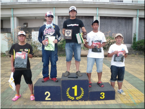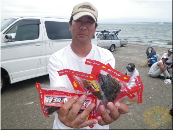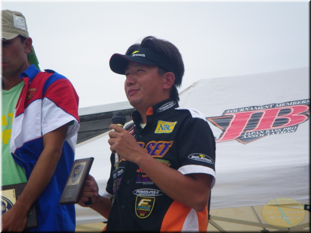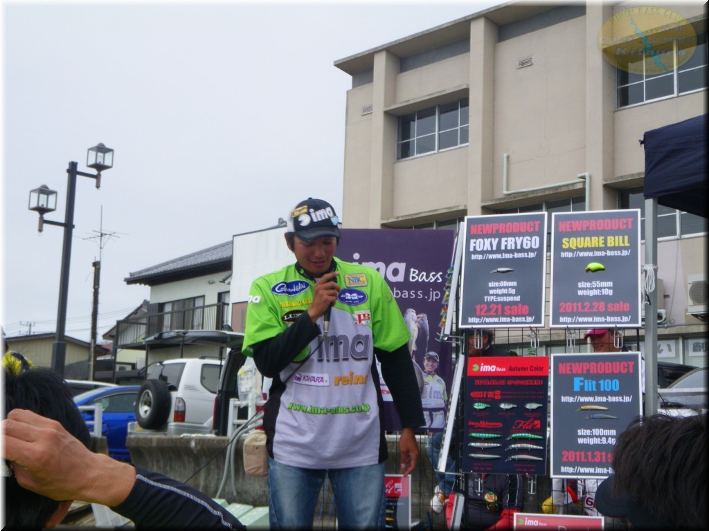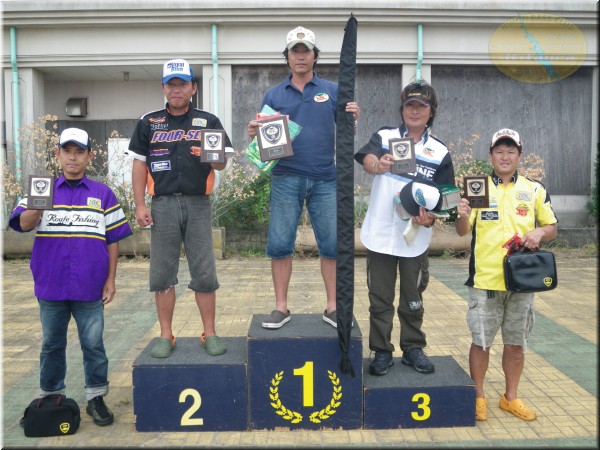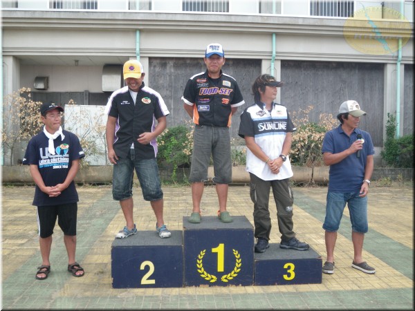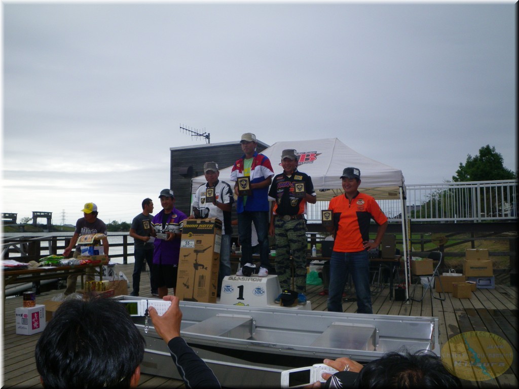 優勝は石川選手が1450gのビッグバスをウエイン。昨年の茨城チャプターショア部門の年間チャンプの意地で大竹選手の3連覇の阻止です。昨年関東Aで私のボートに同船した石川君。1本しか釣れなくって私もまったく申し訳ない!って感じでしたが今年から北浦チャプターのショア部門に参戦してくれ様になってもらってうれしい限りです。そして2位は大竹選手。1300gのこれまた通常なら優勝確実のウエイトのバスでしたが1450gをウエインされちゃねしゃーないか。しかしこれで大竹選手は最終戦を待たずして年間チャンプの確定ですな。年間は確定しても2位以降は混戦。残りの最終戦もGoodな商品を多数用意しておきますので、多くの方の参加お待ちしています。お友達を誘って、又ご家族揃ってどうぞ!
