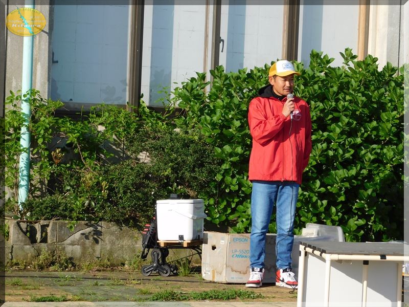 ショア部門参加選手と朝のミーティングでルール説明等を行う泉副会長