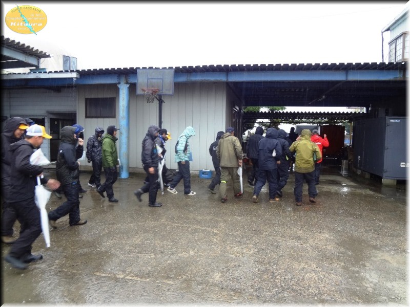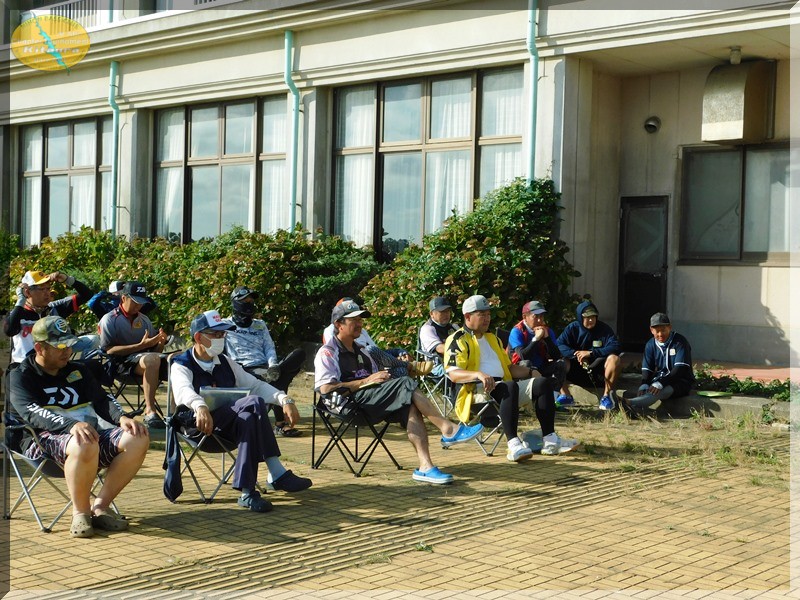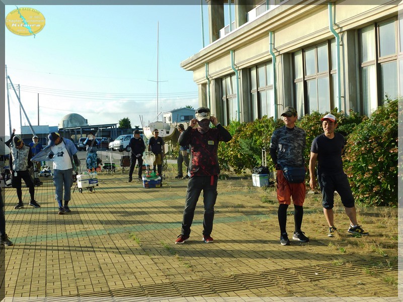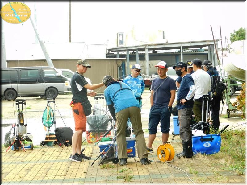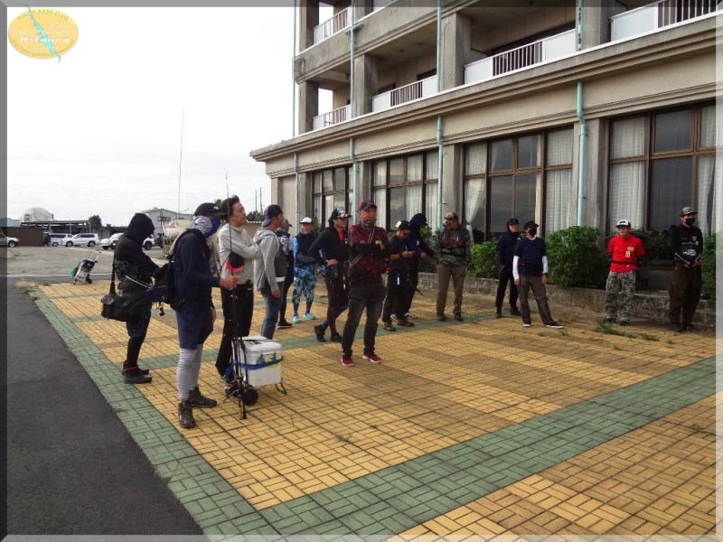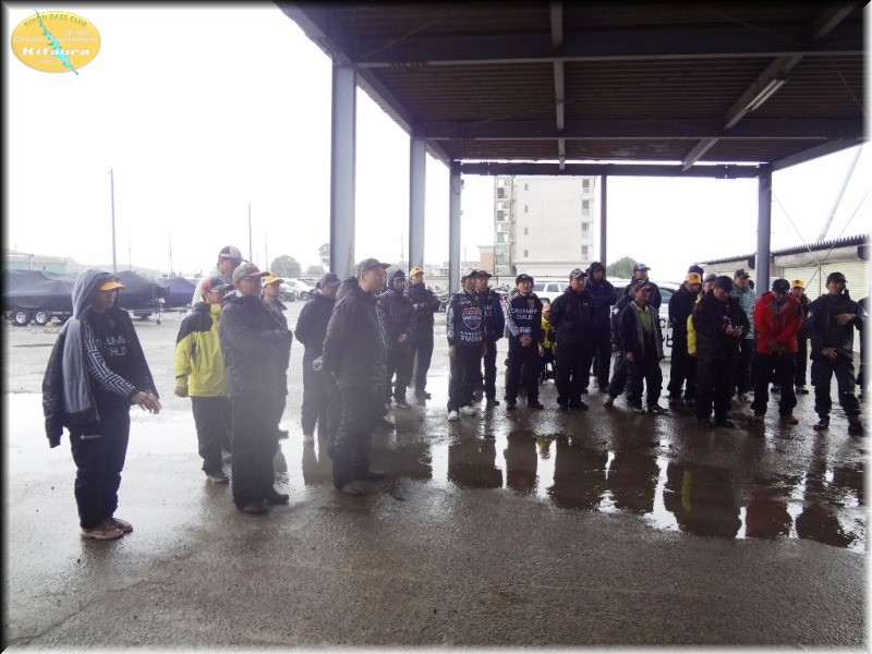 今回4チャプターで権利獲得者は54名で参加者は46名となりました!雨が降り出したこともあって潮来マリーナ内の屋根のあるところをお借りしてのミ朝のーティング開始