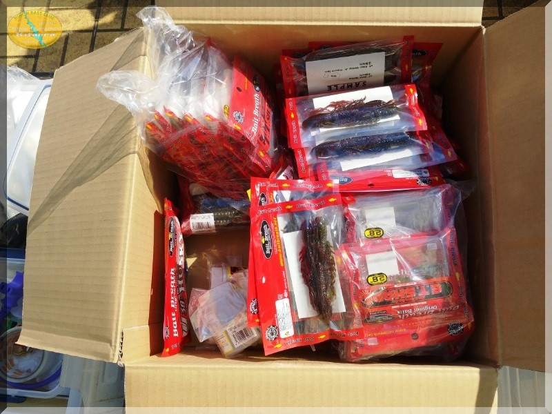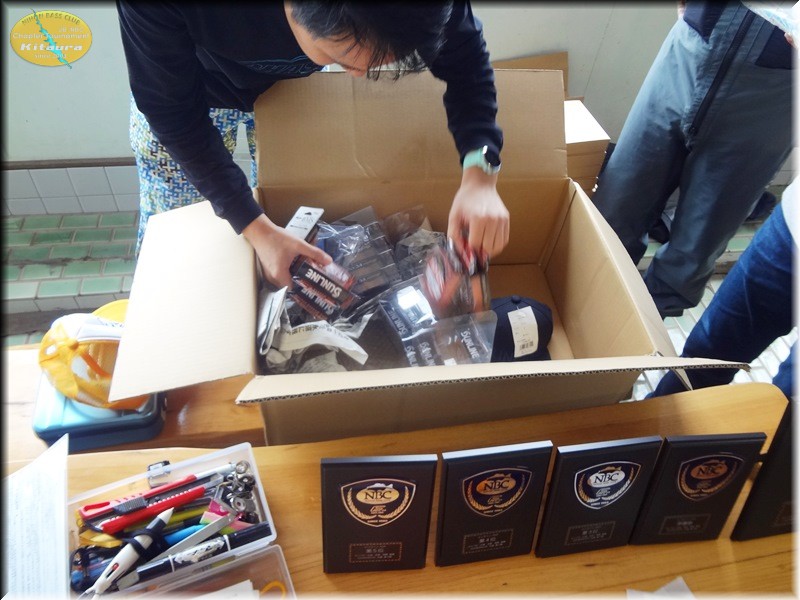 そして今回の冠のベイトブレス様からも大量の協賛品。中でもチャプター北浦ノ常連で年間も獲得し今はTop50で大活躍のる井上泰徳プロのプロデュースワームの「エクスライダーシュリンプ&Jr」を大量に協賛頂きました。ベイトブレス様には今のチャプター北浦セカンドシーズンの開始当初の2007年よりずっと冠を持って頂いてます!毎回本当に多くのベイトブレスの釣れるエコワーム等を協賛してもらってますし、以前には社長直々に会場にお越しいただいたり、ベイトブレスサポートプロの野村プロがゲストに来ていただいたり、当時アメリカのトーナメントに参戦してた清水盛三プロが使用してたバスボートを会場に持って来ていただき展示してもらったりと本当にお世話になってます。参加選手は今後もベイトブレスを宜しくお願いします!