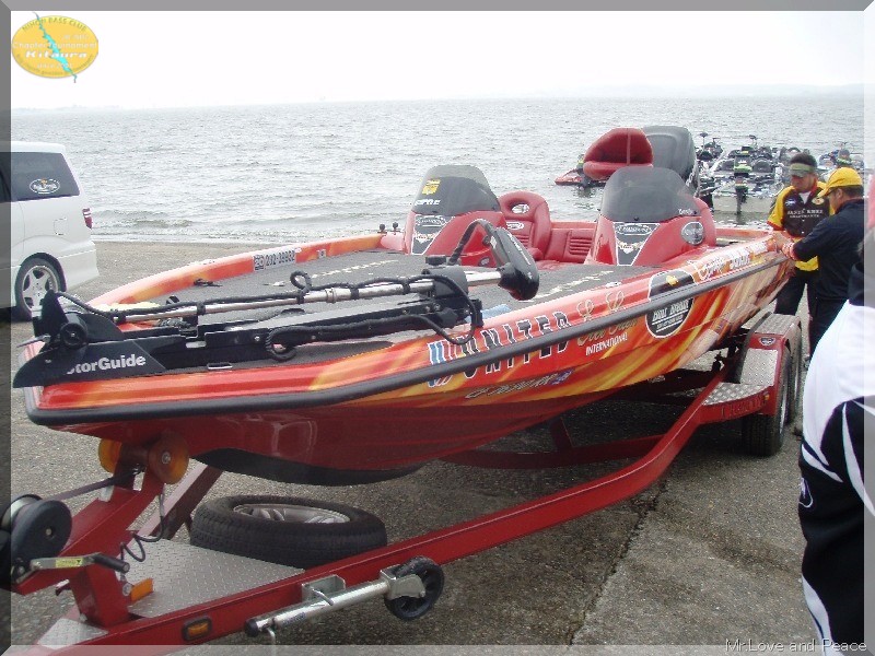 2009年のベイトブレスCupで本部前のスロープに展示された清水盛三プロ使用のラッピングバスボート