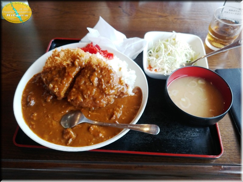 そして帰着前にスタッフは潮来マリーナ内の食堂で美味しい昼食です。私は今回もメンチカレー!うまし!