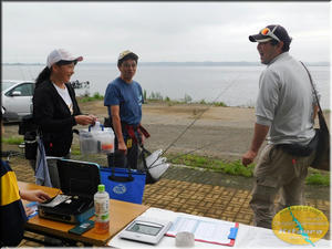 ショアスタッフの泉ちゃんも朝のルール説明等もバッチシで参加選手からの信頼も出てきたてコミュニケーションもグゥーだね。まー多くの人が北浦や茨城のショア部門でやってきた方が多いしね。そんなんでショア部門も無事にスタート!そしてなんと今年から第1戦、第2戦とショア部門の参加を止めてスタッフに専念してた泉ちゃんがトーナメントシャツ来てロッドと台車引いて現れたんで「どないした!」と思ったら我慢できずに相馬会長に「ダメだ~我慢出来ん!会長今からでもショア部門に出場させてくれー!」って言ったか知らんけど!遅れて参戦しに行っちゃた!まーボート部門のスタートが終わればショア部門の帰着11時までそんなに忙しくやる事はないからな。悪いとは思いますが帰着は他の人より早く戻って来てくれればなーんも問題なし!