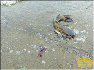 今回参加選手が少なかった事もあって早めに作業完了!いつもよりは長く竿を出せるやん!この時しか今は釣りする事が出来ないんで釣り釣り!色々とリグるのが面倒なんでいつものようにエバーグリーンタクティスのプロガイダンスを出して(前回も使ったから車からすぐ出るけん)でスイミーバレットのノーシンカーで開始。スロープ切れ目で魚信があるんですが乗らんのよ!何でや!で風も出てきたから軽いシンカーでのピッチンショット!ワームはまー古いワームを使いましたこのみ(知らんか)それで魚信もあるやはり乗らん。なんだか糸ずれみたいな魚信が結構あったな。こうやって魚信っても乗らん時の私の対策は、フォーミュラーをたっぷり付けてやる!こうすると魚信っても乗らんかったのが乗り出す事があるんですわ。何度も体験済みなんで。特に山中湖での放流後で魚信って乗らん状態になった時は効果てきめんでっせ!って私は思っとります。なんで1投毎にワームにフォーミュラーを付けてキャスト続行!で魚信が出たんで合わせたら見事に乗った!「ほーらね効果ありですわ」でもこの下へ下への動きはキャット?でやっぱりキャットだった!せっかく乗ったと思ったのにキャットとは今年最初はキャットでスタートかい!バス釣りたいわ