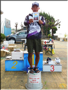 そしてショア部門の帰着&検量です。今回の参加は28名でウエインは11名でした。まー今回も途中から東寄りの風が強くなってましたからな。それに暑いし。石積みエリアはアオコもすごかったらしいでし、ちょいキビシ買ったかなショアは。