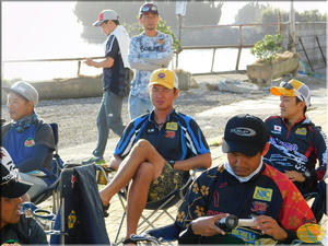 参加は25名の参加です。今回は最終戦なんでこれで年間が決まる大会。4戦まででは安藤選手が188pでトップ、それを牧野選手が180pと8ポイント差で。3位に藤原選手が175p、4位に上原選手の173pで、この上位4名が年間狙える位置につけてるかな、そして毎年年間に絡んでくる石川選手が146pでちょっと今年は年間は難しいかな。まー石川選手が年間に絡めないなんて珍しいですが、それだけショア部門の参加選手の多くが実力を付けてきたって事かな。上位の4名はここまで4戦で全て魚を持ち込んでポイント獲得してますからね。