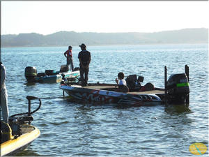 暫定1位の日置選手もやる満々、今回は最終戦なのでチャプター北浦では恒例の会長が同船します。