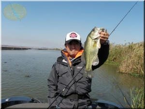 諦めかけていた2日目、10時半くらいにやっと待望の1匹目!談笑をしながら適当に巻いていたエコハイピッチャーに突然のバイト!出た「殺気消去釣法」!1ヶ月の間全く釣りをしていなかったので久々にしびれました!富村プロが自分の事のように喜んでくれていたのが更に嬉しくて…涙が出そうになりました。