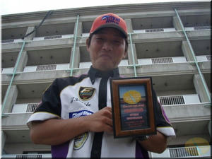 第5戦の優勝はビビるの愛称でおなじみの日向寺護選手が今シーズン2勝目。そして2位は岡田選手。ん?これって第1戦と同じ。岡田選手は日向寺護選手に2度も優勝阻まれてるんか。今年の優勝は、日向寺選手が2度、渕井選手2度、岡田選手が1度なんですが1勝の岡田選手がA.O.Y獲得なんですね。年間を取るって事がどんだけ大変な事か良く解る結果ですね。それだけに岡田選手のA.O.Yは素晴らしいって事か?会長レポートに有るように岡田選手はやっぱ釣りもしつこくしつこくやっての結果ですな(釣りも?他も?それは知りませんが(笑))